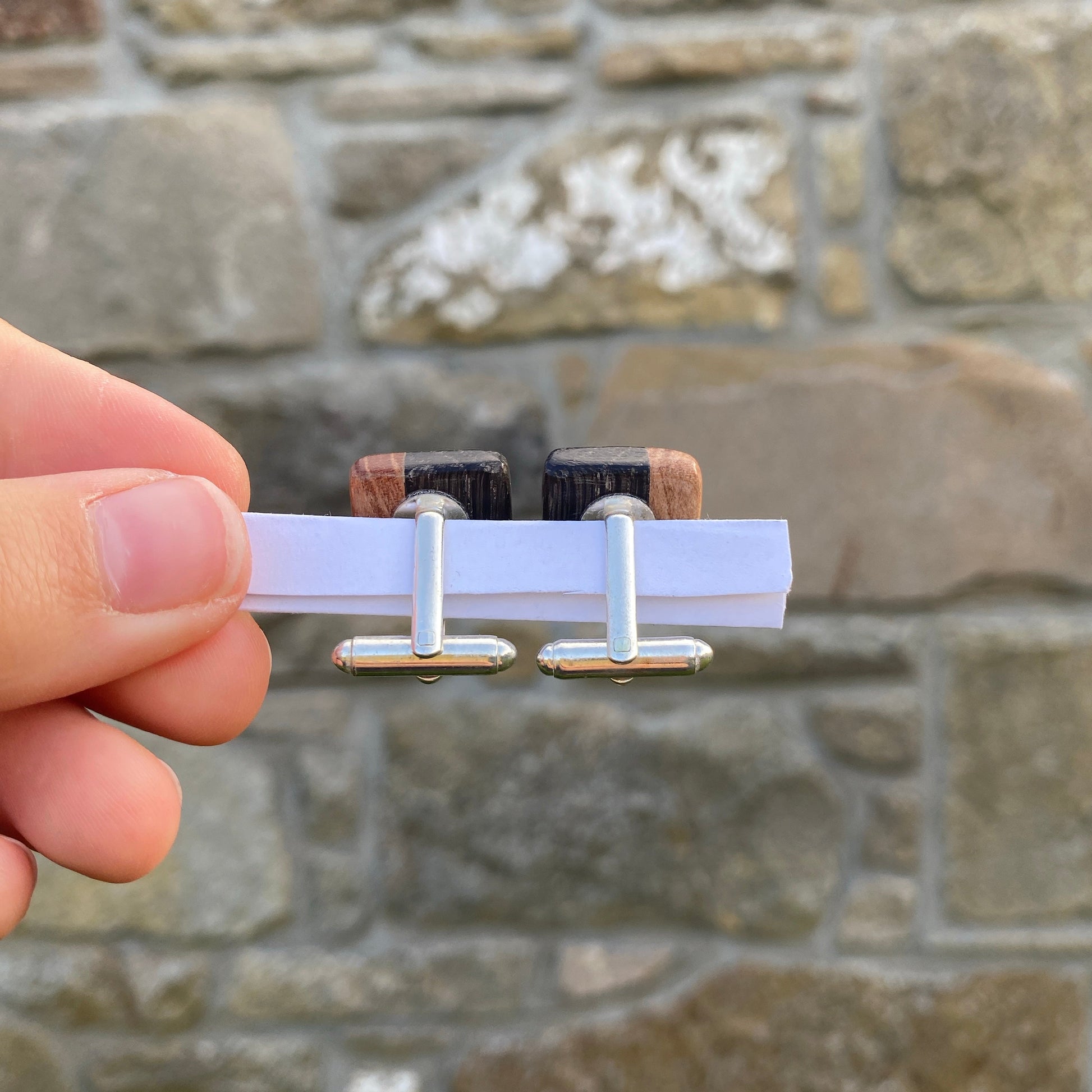 These cufflinks are created from the offcuts of the Sgian Dubh making process in my workshop. The cufflinks are lightweight, sanded and polished to create a smooth texture.