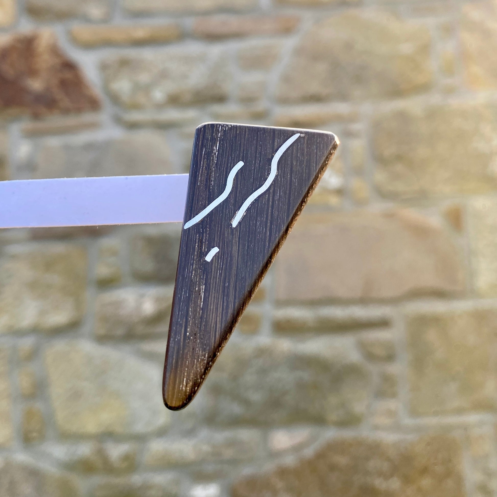 Stabilised Bog Oak Pin with Silver Pattern Inlays.