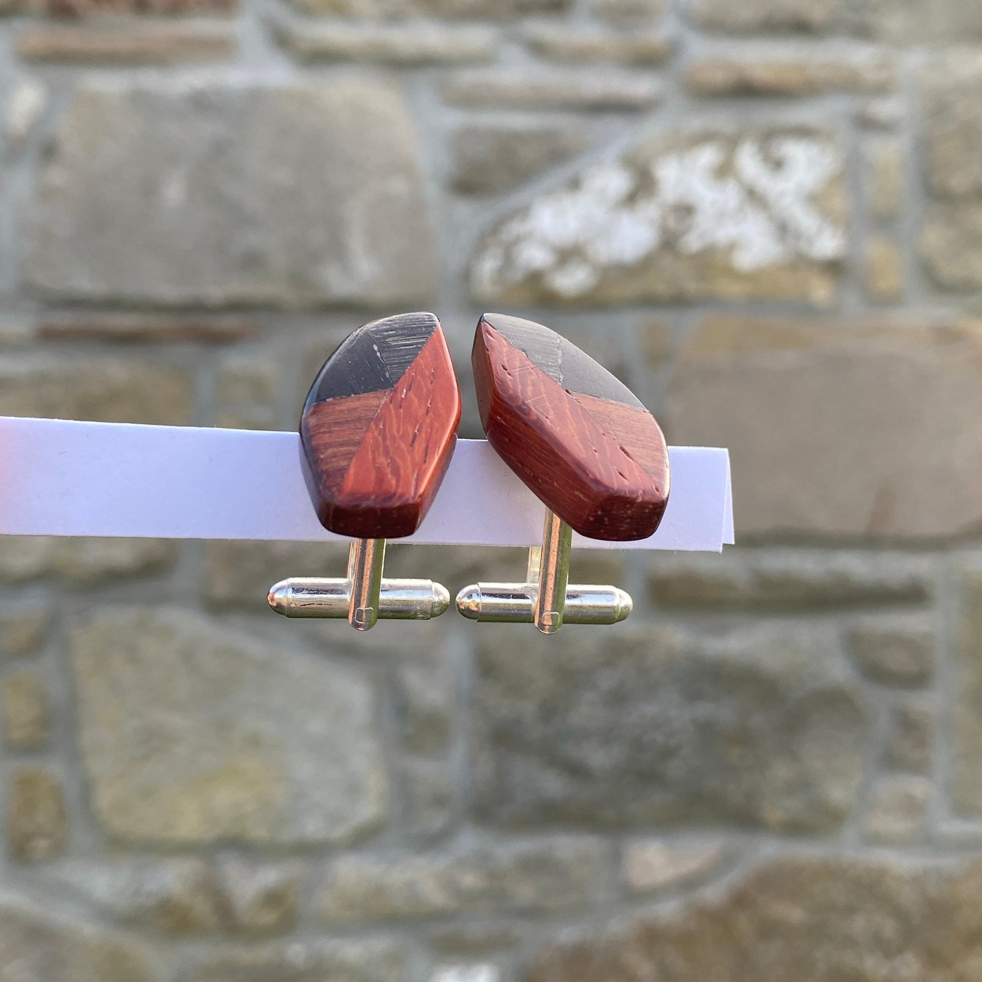 These cufflinks are made from the offcuts of my wooden Sgian Dubhs to reduce waste in my workshop. They are lightweight, sanded and polished for a smooth texture.