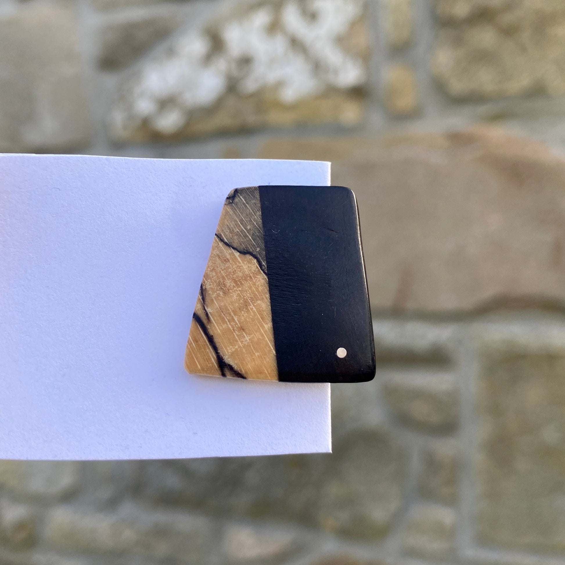 Stabilised Spalted Beech and Ebony Pin with Silver Dot Inlay.