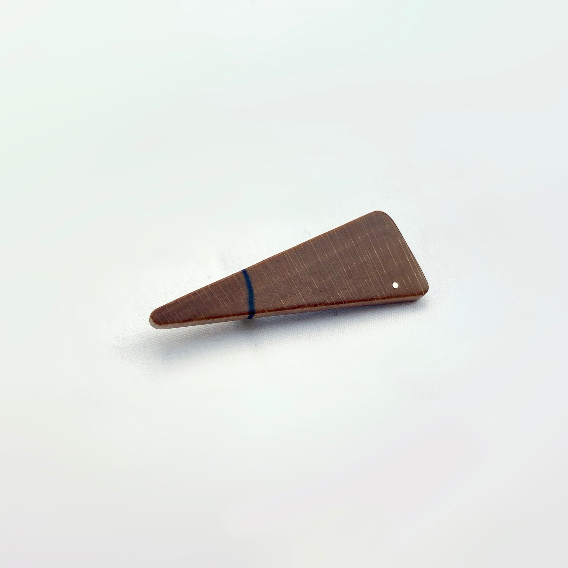 This pin is created from the offcuts of the Sgian Dubh making process in my workshop. This piece has a simple pin and catch affixed to the back of the piece (see image). Sanded edges and a polished finish create a smooth texture. The piece is lightweight and versatile, pairing well with a kilt and your everyday wear.